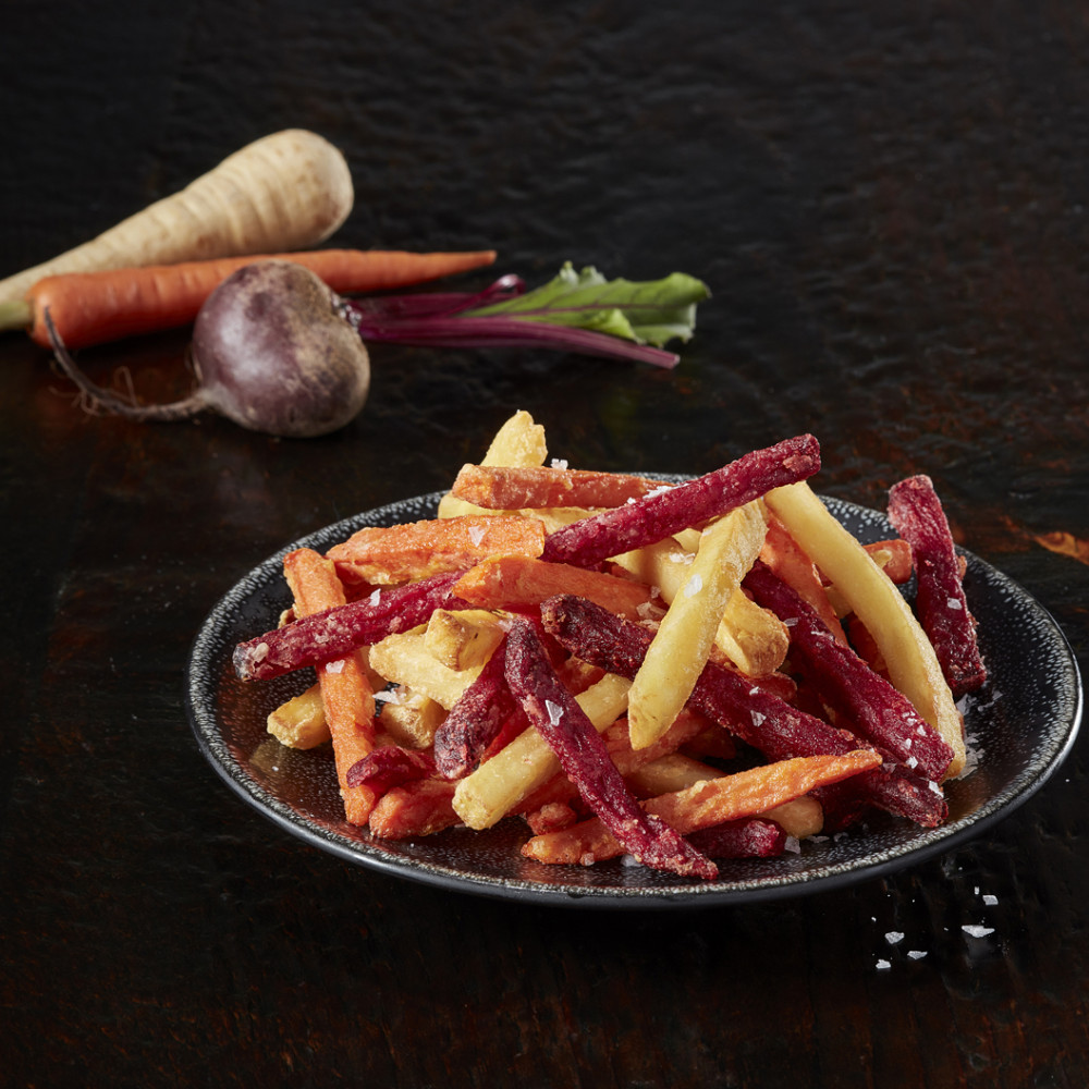 Könnyű és ropogós növényi rudak, amelyek a sárgarépát, a céklát és a paszternákot egyesítik az ízek és textúrák kirobbanó keverékéhez.